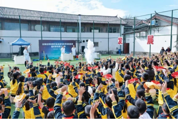 三所学校还分别在操场举行了实验展演活动,《航空航天科学实验秀》《力争上游》《厨房大作战》《点燃心火,圆梦太空》等精彩节目依次上演,以直观有趣的实验现象和深入浅出的讲解,向师生们展示了科学的神奇魅力。整个实验展演过程,学生们全神贯注不时发出惊叹声和欢呼声,现场气氛活跃。