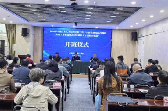 2024年10月8日,云南省2024年专业技术人才知识更新工程“云南省建设面向南亚东南亚人才新高地高层次科技人才国情研修班”在澳门金沙娱乐城官网 院开班,云南省内从事科技创新相关工作的中高级专业技术人员,企业经营管理者等70余名学员参加培训。省科学技术院党委副书记、副院长李常有,澳门金沙娱乐城官网 厅科技人才与科学普及处处长张明出席开班仪式并讲话。开班仪式由省科学技术院人才与金融处处长石文杰主持。